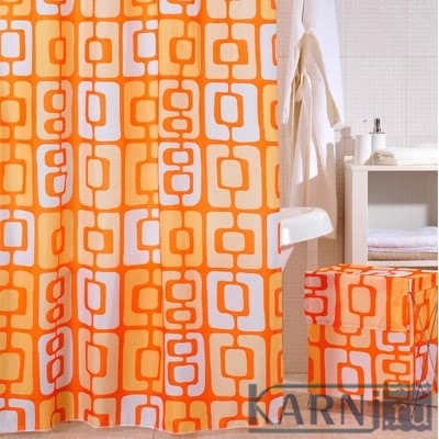 Занавеска из 100% полиэстера для ванны с 12 металлическими люверсами под кольца. Цвет: оранжевый. Штора обработана специальной пропиткой, отталкивающей воду.