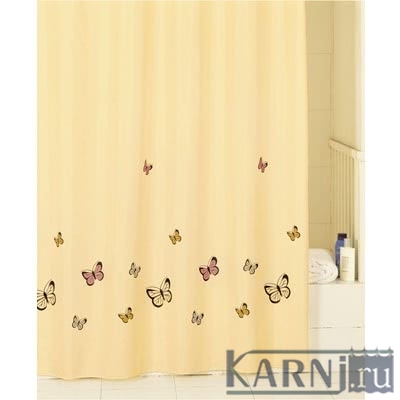 Занавеска из 100% полиэстера для ванны с 12 металлическими люверсами под кольца. Цвет: бежевый. Штора обработана специальной пропиткой, отталкивающей воду.